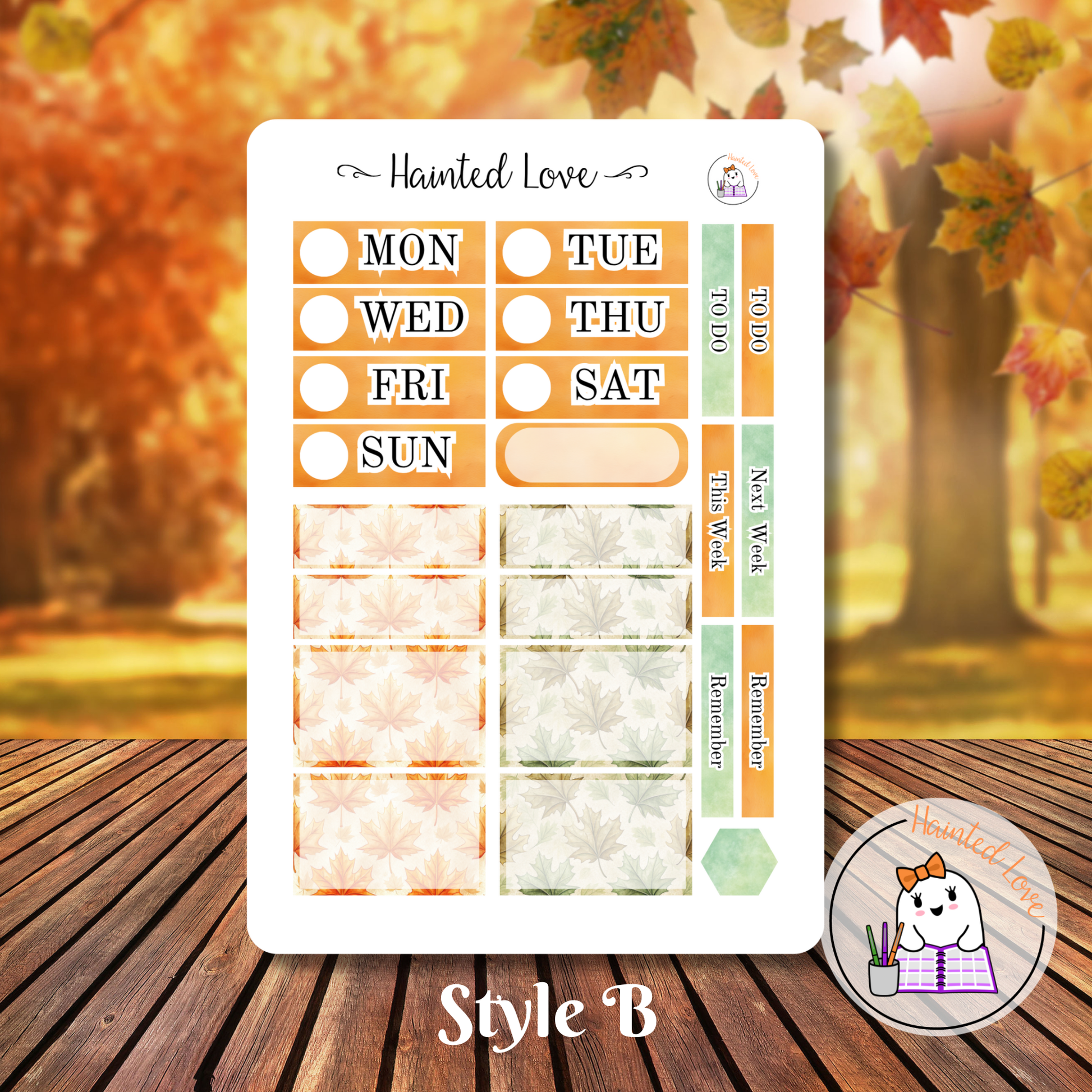Bring the magic of autumn winds to your planner with this cozy sticker kit featuring swirling leaves, soft orange tones and refreshing green accents. Perfect for adding a whimsical, seasonal touch to your spreads as the leaves dance and weather turns crisp.